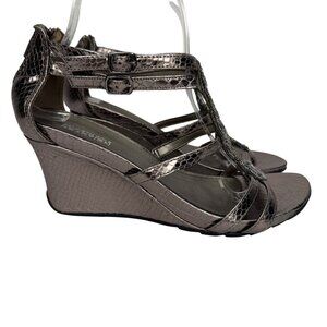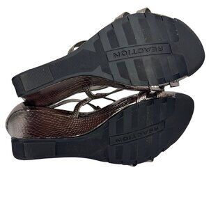 Y2K Kenneth Cole Reaction Bronze Faux Snake Skin Wedge Sequence Sandals Size 7.5
