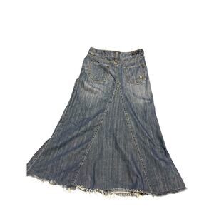 Y2K Kersh Blue Coco Jean Skirt 30 Denim Long Maxi Fringe Tulip Flare Modest