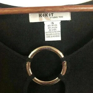 Y2K Kikit Studio Too Ladies Black Silver Ring Knit Sweater 3/4 Sleeves size 1X