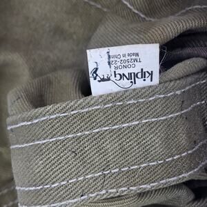 Rare Vintage Y2K Kipling Conor Military Green Canvas Large Tote Bag Double Handle & bag charm