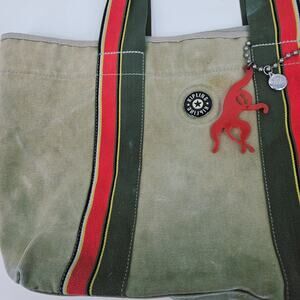 Y2K Kipling Conor Military Green Canvas Large Tote Bag Double Handle & bag charm