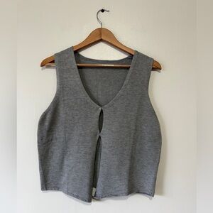 Elevate your wardrobe with this stylish gray sleeveless knit top. Perfect for layering or wearing on its own.