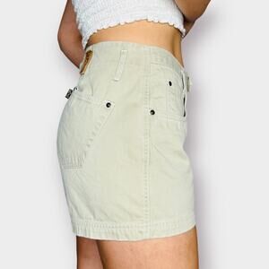 Y2K mid rise shorts with front zip and button closure. Relaxed fit on the thigh.