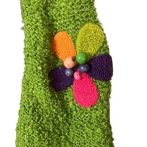 Y2K Knubby Knit Crop Sweater Indie Artsy Floral Beaded Bell Sleeve Lime Green M