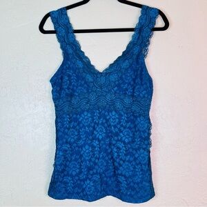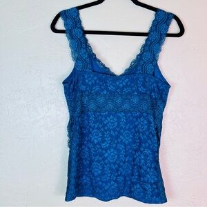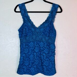 Y2K LACE FLORAL SHEER OVERLAY BABY DOLL CORSET TOP DARK TEAL BLUE SIZE Medium