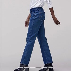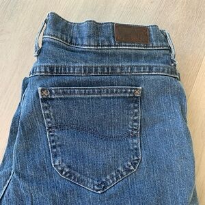 LEE Jeans sit at the waist. Size 12 petite. Excellent used condition. Waist measures 31 inches. Front drop measures 10 inches. Inseam measures 26 inches.