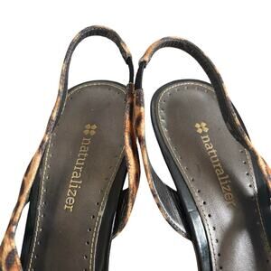 Y2K LEOPARD PRINT SLING BACK KITTEN HEEL SANDALS NATURALIZER SZ. 8