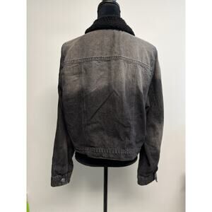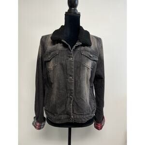 Y2K L.E.i Black Distressed Jean Denim Jacket Faux Fur Collar XXL 2XL Edgy Grunge