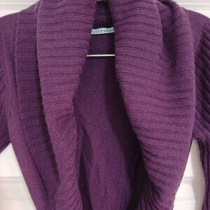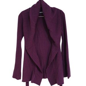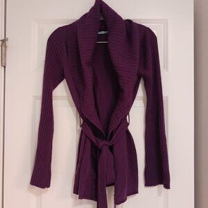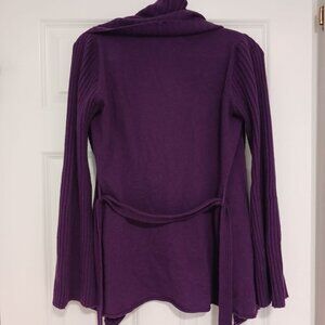 Y2K LILY MCNEAL Purple Cashmere Cardigan Sweater Wrap Ribbed Bell Sleeves Belt