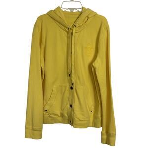 Y2K LRL Lauren Jeans Co Yellow Button Up Hoodie Crest Size Large Preppy Casual