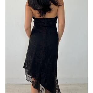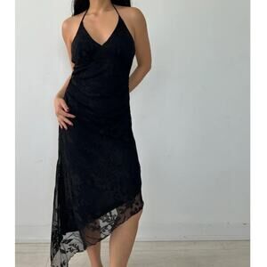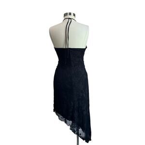 Y2K La Chateau Asymmetrical Hem Black Halter Whimsigoth Lace Dress Size Small