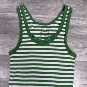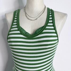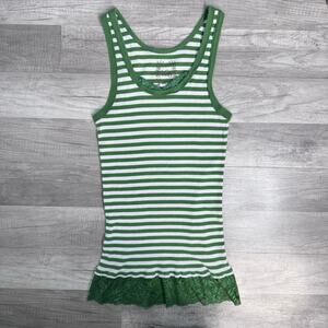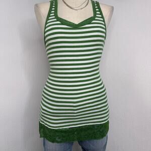 Y2K Lace Cami Tank Top Long Green and White Stripped Size Large