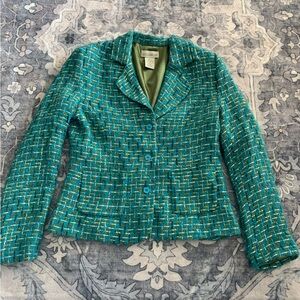 Laura Leigh tweed blazer. Blue and green color. Has blue floral buttons. Size 4.