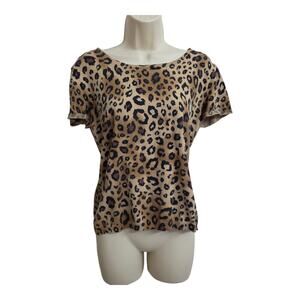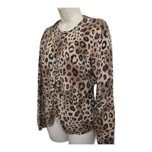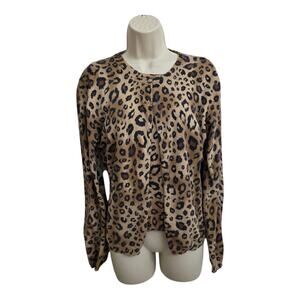 Y2K Leopard Print Top + Button Up Cardigan Set Cashmere Blend Medium - 2 pieces