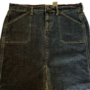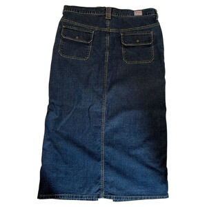 Y2K Levi Strauss Women's Denim Midi Skirt Dark Wash Front Slit Size 16 90's