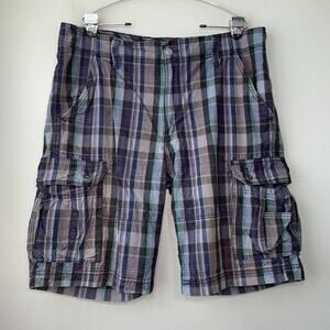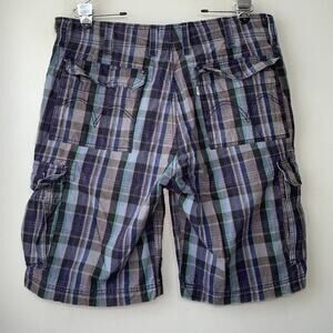 Levi's blues, green, and black plaid print cargo shorts in Excellent pre-owned condition!