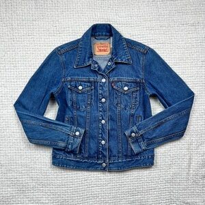 darker wash waist length (women’s cut) denim jacket with a snap button closure from 2005