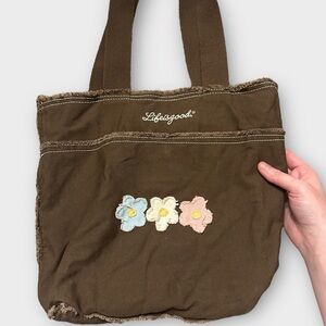 🖤 Details: Y2K small tote bag with flower design and frayed edges. Perfect size for a small beach bag, lunch bag, or a day at a theme park