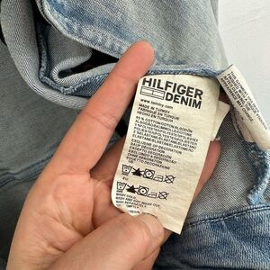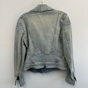 Y2K Light Wash Denim Biker Jacket Tommy Hilfiger Zip Front Silver Hardware S