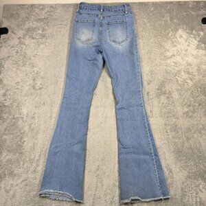 Y2K Light Wash Flare Denim Jeans Womens Mid-Rise Distressed Grunge Preppy Frayed
