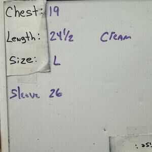 Measurements from photos: Chest 19 in; Length 24.5 in; Sleeve 26 in