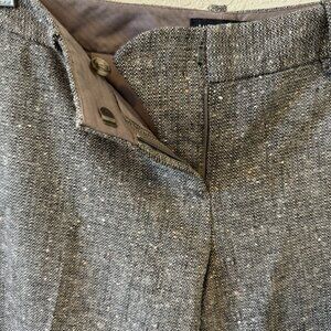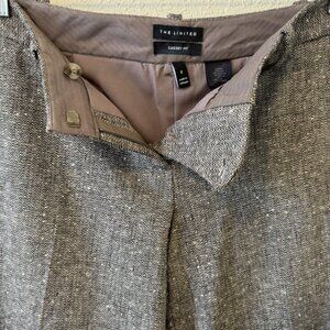 The Limited wide legged pants. Size 2, low waist, fits closer to size 4. Subtle tweed fabric. Wool/polyester blend (50% wool, 28% polyester 2% spandex) with polyester lining. Beautiful drape.