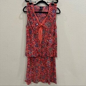 Y2K LinQ Los Angeles Women's Ruched Floral 100% Silk Set Sz L Boho Cottagecore