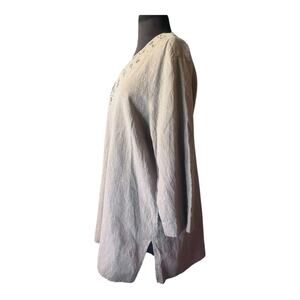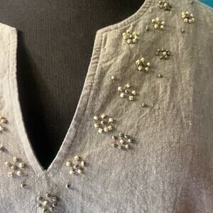Y2K Linen Beaded Lagenlook Boho Tunic TopWomens Size 1X Euro Summer Scandi