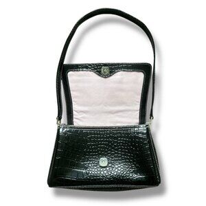 Y2K Liz Claiborne Black Crocodile Embossed Faux Leather Purse Shoulder Bag