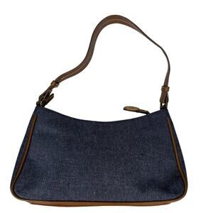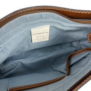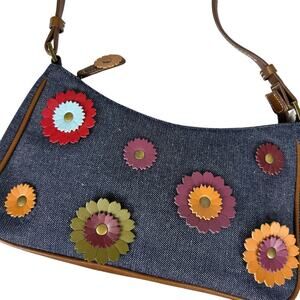 Y2K Liz Claiborne Denim Faux Leather Floral Applique Top Handle Shoulder Bag