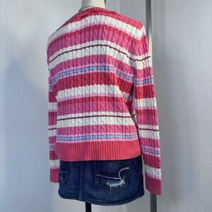 Y2K Liz Claiborne Pink Striped Sweater Cable Knit Cotton Preppy Coquette Large