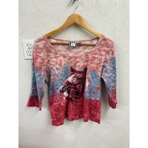 Y2K Long Sleeve Crop Blouse Horse Print Sequins Blouse Take Two Medium