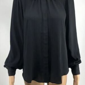 LOUIS VUITTON Blouse Sz 34 BLACK Puff Sleeves Flowy Button-up Collar Relaxed Semi Formal Office Career Workwear Church Event Gothic Artsy Designer