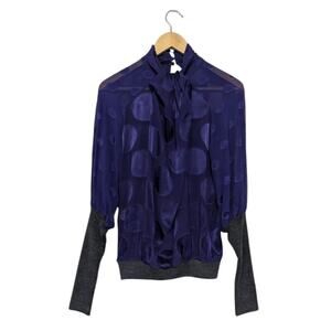 Y2K Love Moschino Sheer Embroidered Polka Dot Blouse Wool Preppy Workwear Office