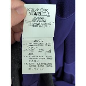 Gray material is knit and 49% acrylic 48% wool 1% elasthane 2% Nylon