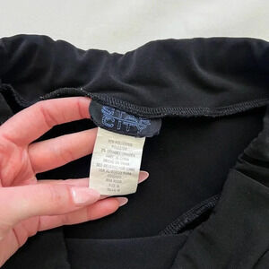 “star city” black low waisted mini skirt with an asymmetrical hem