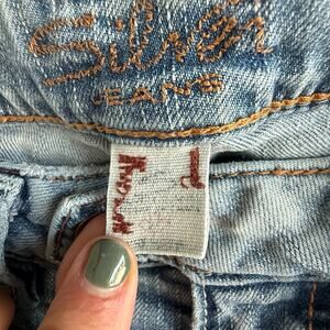 Light-wash Y2K jeans with a low rise, bootcut leg, and a double-button waist that snugs the fit. Soft vertical fading and whiskers down the front, finished with S-embroidered back pockets the true early-2000s look. The pair you throw on with a baby tee and suddenly you're Y2K.