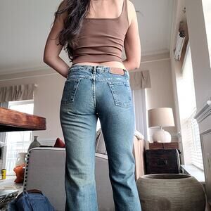 These are in vintage condition and show signs of wear, including but not limited to discoloration, stains, or distressed denim.
