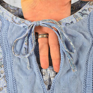 Y2K Lucky Brand Powder Blue Paisley Cap Sleeve V Neck Boho Blouse Size Medium