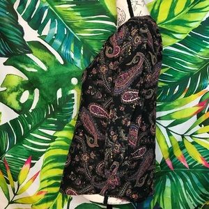 Y2K Lucky Brand Women's Small Black Pink Sheer Paisley Work Casual Office Blouse