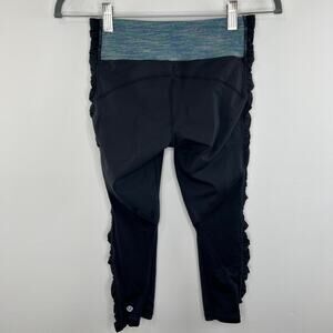 Y2K Lululemon Black Green Waist Ruched Capri Cropped Athletic Leggings Size 4
