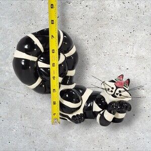 Straight out of the early 2000s and ready to grin like a Cheshire, this whimsical black-and-white cat candle holder by Lynda Corneille for Character Collectibles (©2002, model LA-009-C) channels pure Y2K charm. Perfect for cat lovers, collectors, or anyone who decorates seasonally with a hint of mischief and glow.