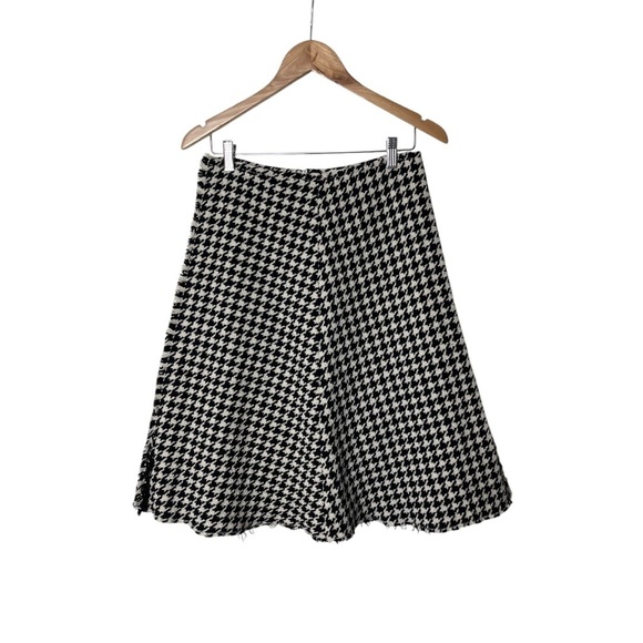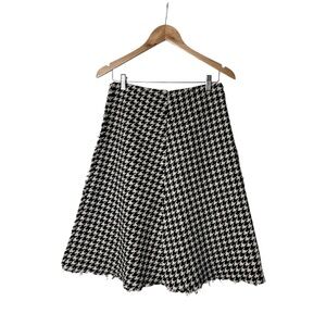Y2K MAXMARA White Black Houndstooth Fringe A Line Skirt Twee Academia US 6 1828