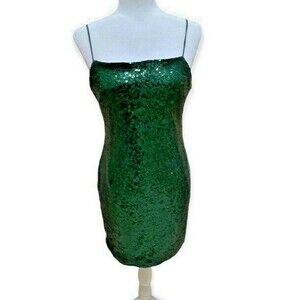 Y2K MIND CODE Emerald Green Sequin Mini Dress Size L Sparkly Bodycon Party Disco