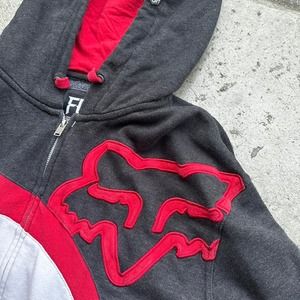 Description: y2k grunge FOX RACING zip up jacket, size XL, in good condition no holes but small stains in the front (last picture)