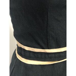 Tan/Beige trim at the waist, halter straps, and hem.