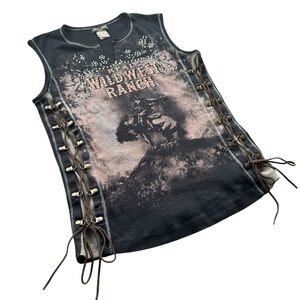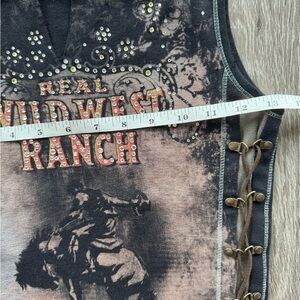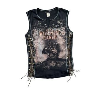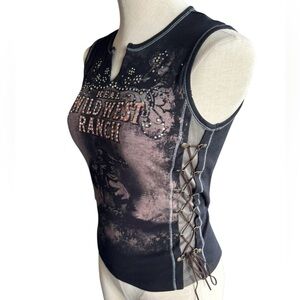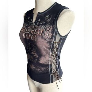 Y2K Made in USA Skinny Minnie Lace up Rhinestone Cowboy Graphic Tee size Medium