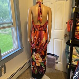 Y2K Magic Maxi Dress L Babydoll Studded Halter Red Black Floral Beach Tropical