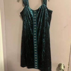 Y2K Mall Goth dress corset style front velvet teal brand new M/L Coachella