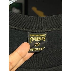 Custom bootleg, the sizing on the tag is way off, fits more like a large. There are some faint stains in the pits, very possibly removable, as well as small mark above the graphic.